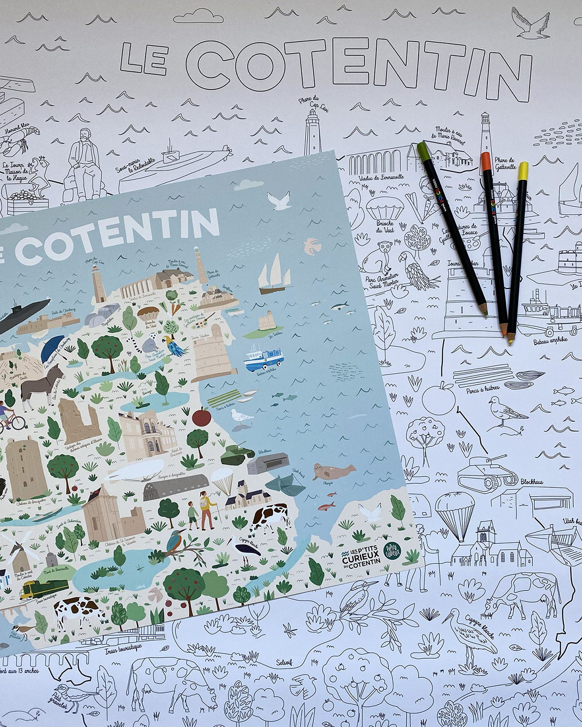 J’ai illustré le Cotentin et ses merveilles pour réaliser un coloriage, une affiche, un puzzle, des cartes postales et même… un jeu memory !
